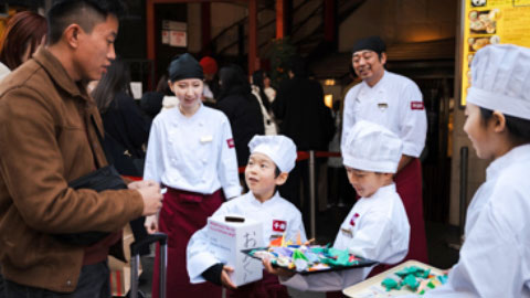 子どもたちは「OMOレンジャー」と同じユニフォームを着用し、飴を使った“アメニケーション”やチェキ撮影を通じて、世界からのお客さまと触れ合う特別な一日を過ごします。