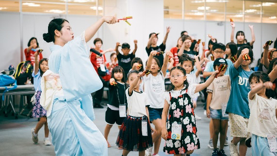 「Hello! おもてなしジュニア」は、日本の小学生・中学生が折り紙や盆踊りなどの日本文化を通じて海外からの来場者を笑顔で迎える<国際交流プログラムです。2023年より開始され、2025年大阪・関西万博では大阪ヘルスケアパビリオンの公式プログラムとして実施されています。参加する子どもたちは「日本文化の小さな大使」として、言葉や文化の壁を越えた交流を行います。8月22日の「Hello! おもてなしジュニア」のステージでは、入院中の子どもたちもテクノロジーを活用して世界とつながる特別企画が行われます。